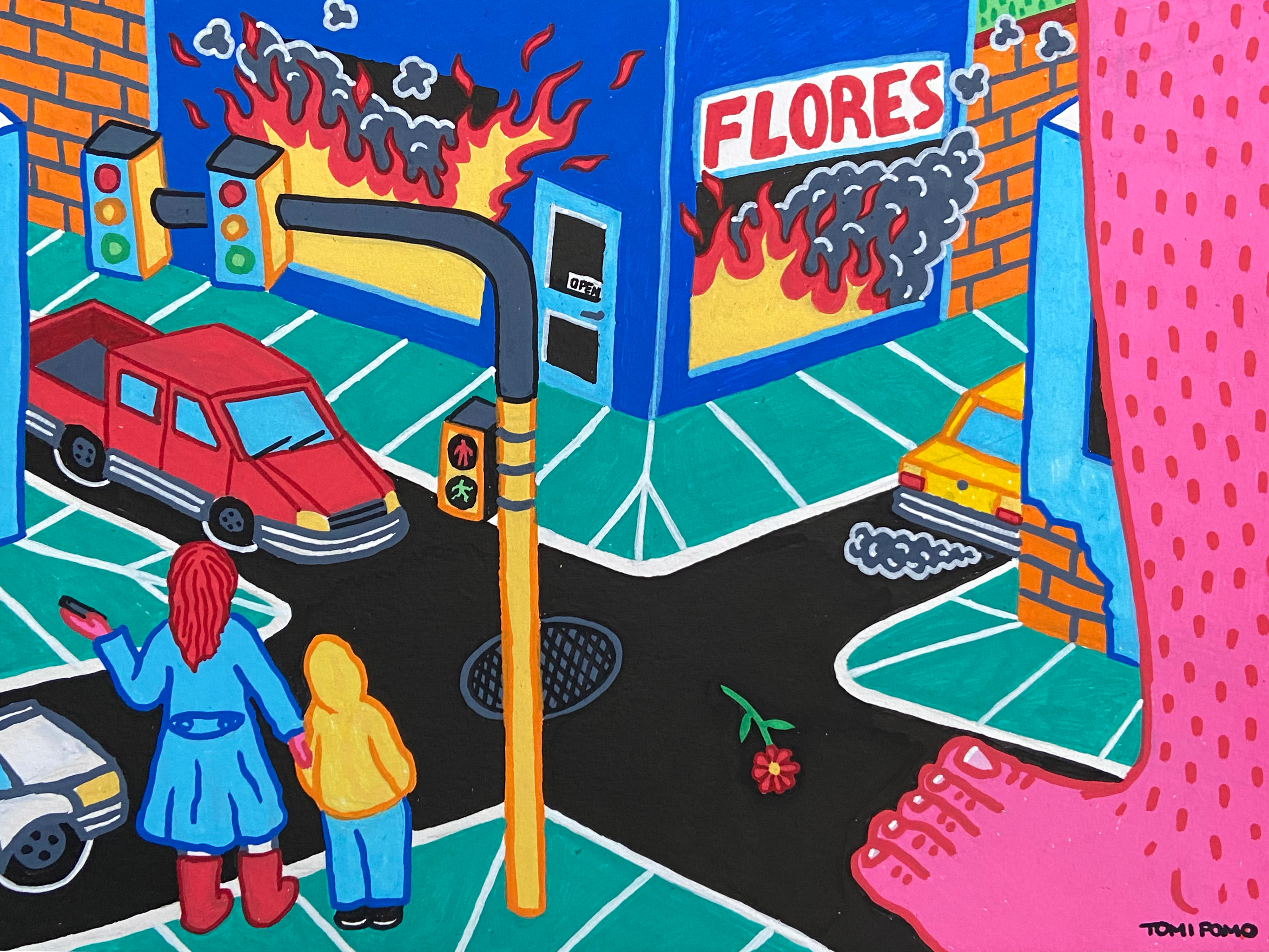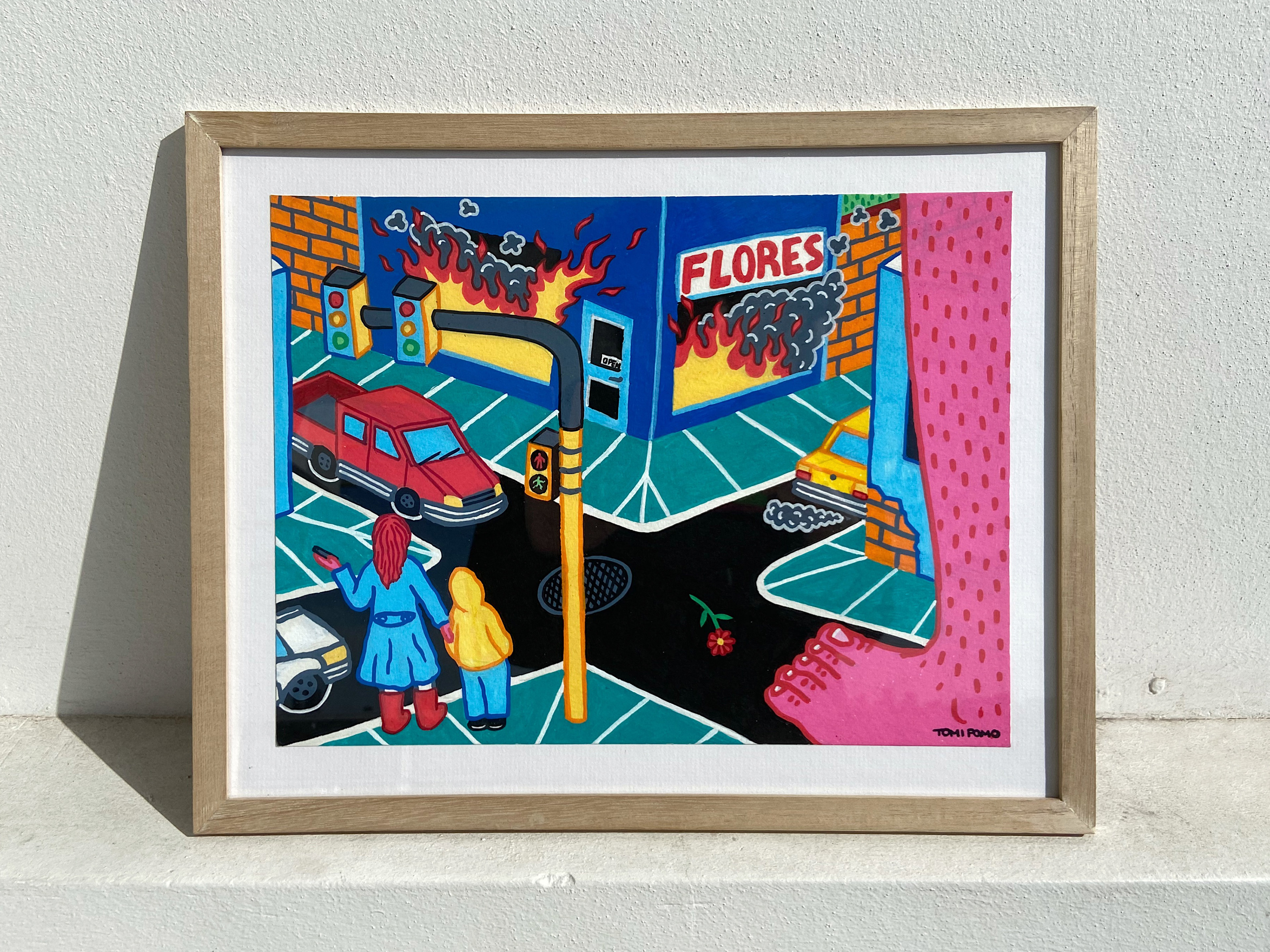 "Incendio en la Florería" - Acrylic Paint on Paper